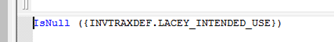 Formula: IsNull ({INVTRAXDEF.LACEY_INTENDED_USE})