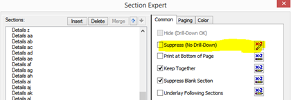 Open the formula menu next to “suppress (no drill-down). Enter the following: