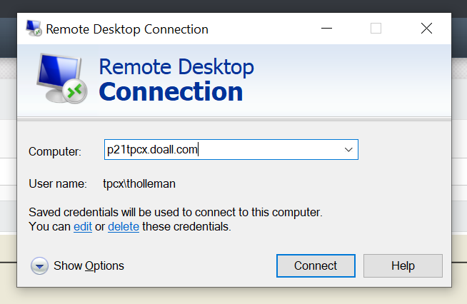 1. Log into the server p21tpcx.doall.com with RDC