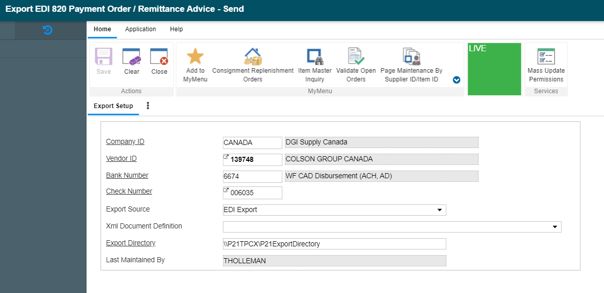 Resending EDI 820 Remittance Advice in P21 (resend AD checks)