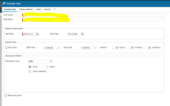 9. The “Schedule Task” dialog will appear. Enter the Task Name and Description in the first two fields. They should mirror the existing PORG name/description.