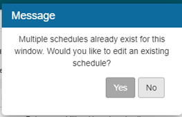 8. Go to the top of the screen and click on the “Schedule” icon. A dialog message may appear, “Multiple schedules already exist for this window. Would you like to edit an existing schedule?”. If you have already created a schedule, select “Yes”. If this is the first time you are scheduling a PORG, select “No”.