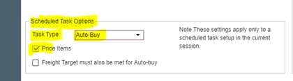 6. In the “Task Type” pulldown, select “Auto-Buy”. This will enable the “Price Items” check box. Leave the check box enabled