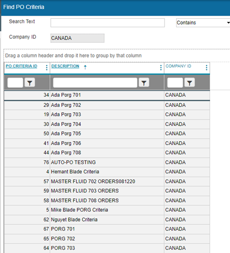 2. Click on Purchasing Criteria Id (underlined) to search for an existing PORG.