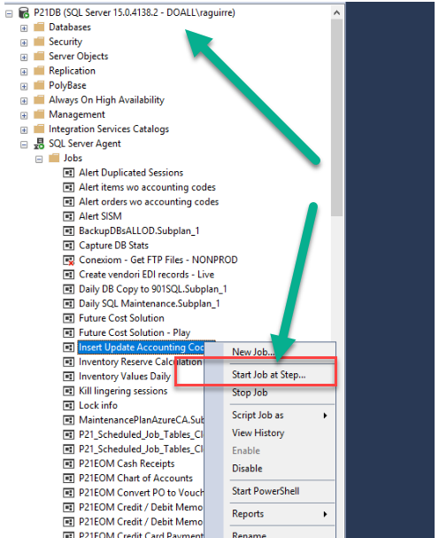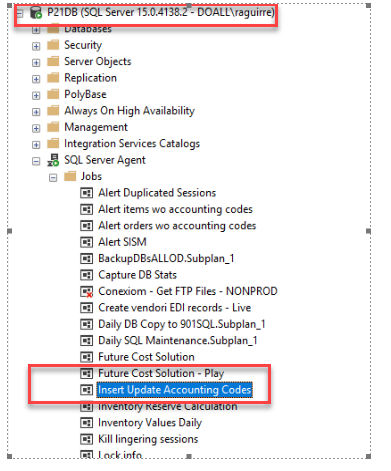 - Once you have placed the file in the shared folder. You will need to run a SQL job that I setup in P1DB called Insert Update Accounting Codes