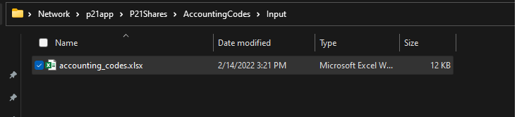 - This is the primary path where you need to place the source file (xlsx), the file has to be named “accounting_codes.xlsx” always, and also the sheet name “accounting_codes”.