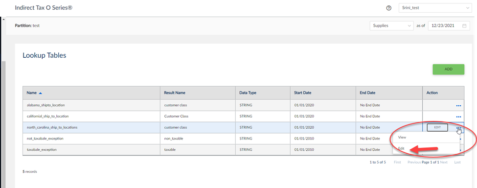 Step 3: Hover Over to Action column for the state you need to add the Ship-To location partial exemption.