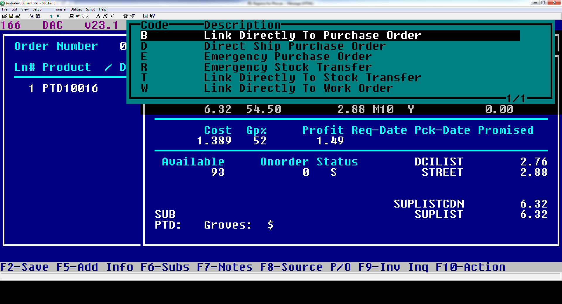 This is using the line item shipping source code in prelude. Mini table from prelude follows. This gives us a quick look at whether we are shipping from our stock or ordering from a vendor. (W,T, and ### values would indicate we utilized our existing stock, B & D would be we had to order new stock from the vendor to cover the shipment either directly or ordering into stock to ship out). Buyer Queue specifically means the item was not in stock, but instead of drop shipping we just backordered to the warehouse for the buyer to include in their next stock purchase due to minimum order quantity, inventory to cover already in route, etc. This is actually really powerful in that we can then drill down into the D and B values when we are evaluating our stock position and what new items to consider adding to our stock program, or on an account manager level what he might need to bring in as customer specific stock to support a large customer.