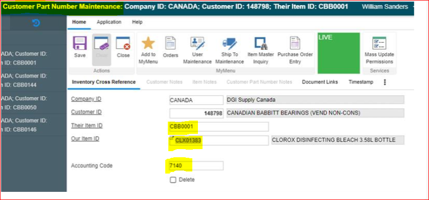 1. Open the "Customer Part Number Maintenance" window.