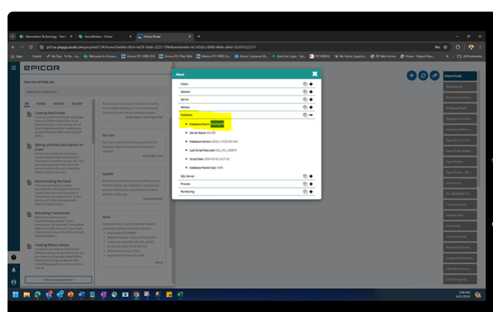 First, always verify the database name, and the folders, which are setup.
